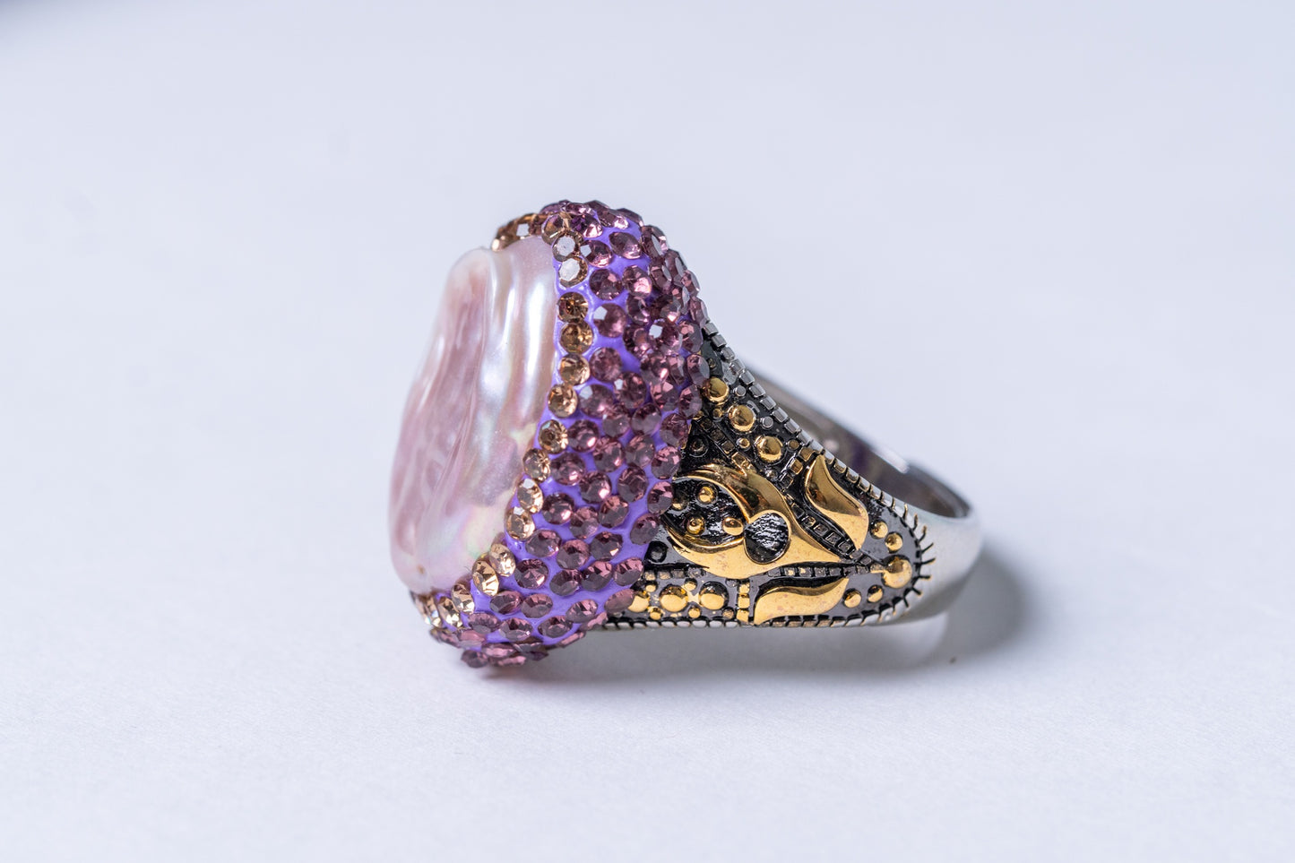 Baroque Pearl Hand-Carved Ring - Adjustable Size