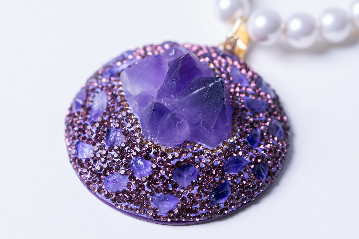 Raw Amethyst Pendant with Real Pearl for Spiritual Healing Necklace