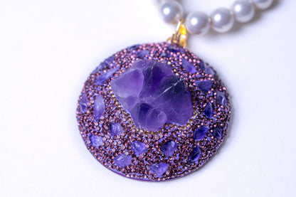 Raw Amethyst Pendant with Real Pearl for Spiritual Healing Necklace