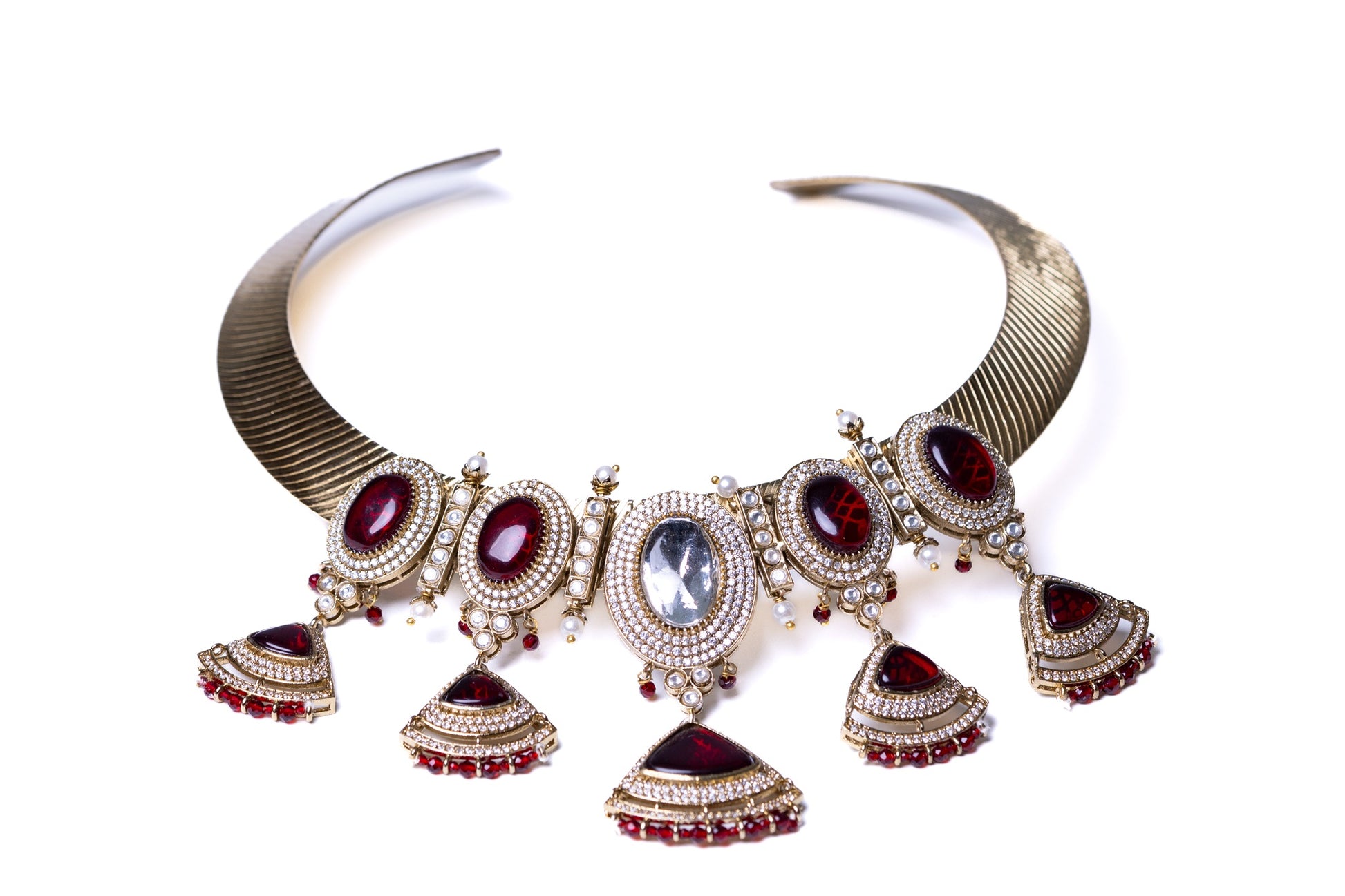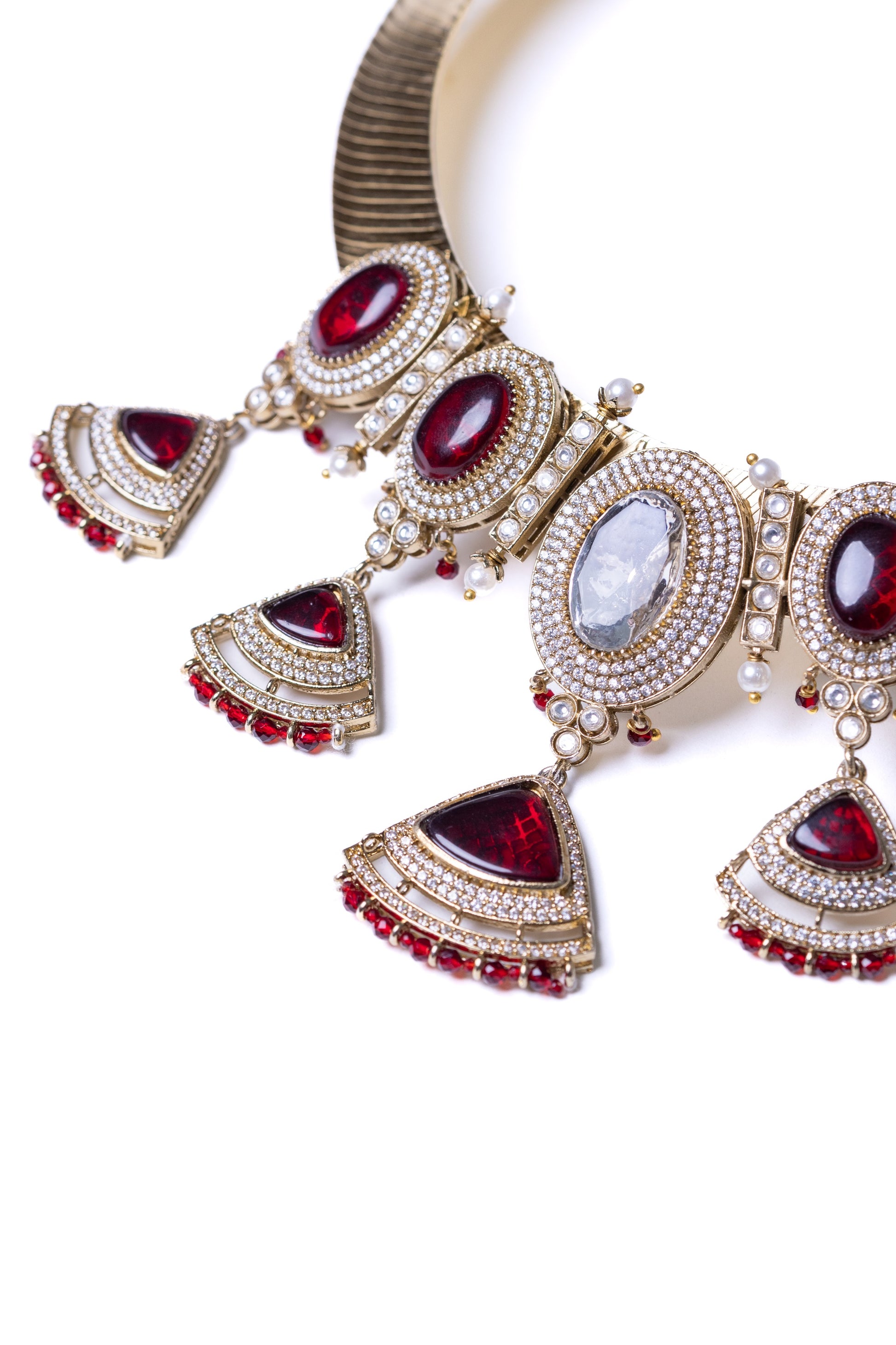 Ruby Stone Polki Moissanite and American Diamonds Zirconia Hasli Necklace