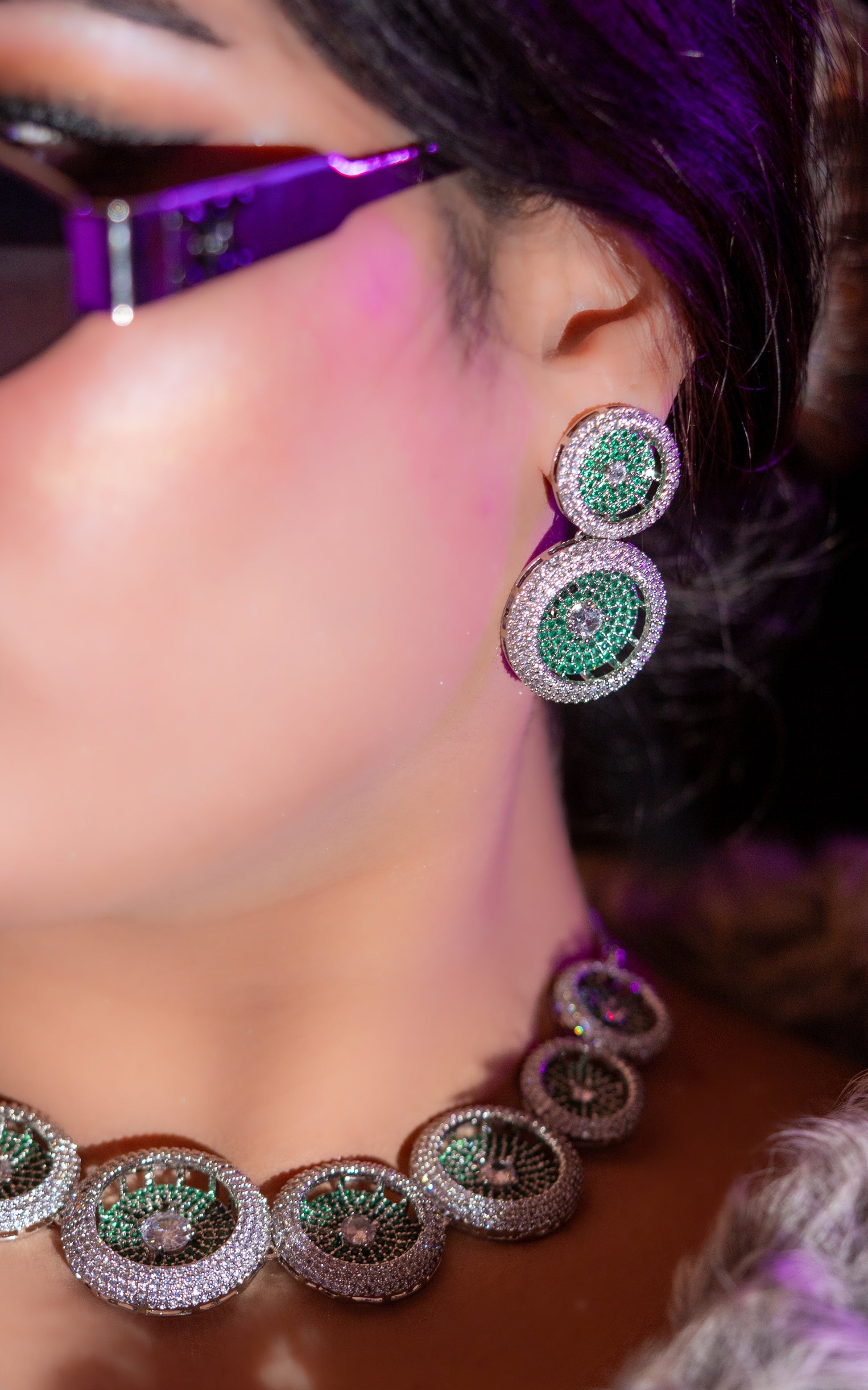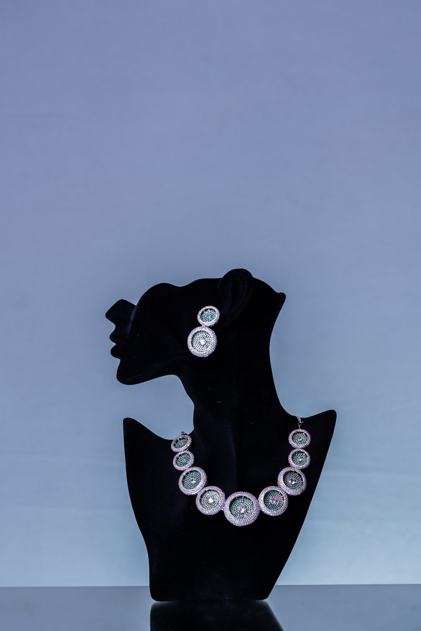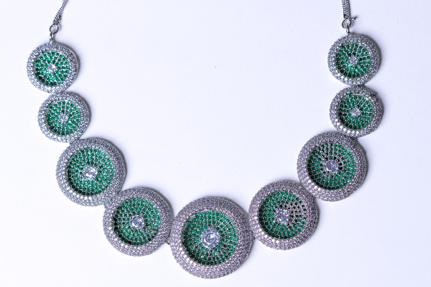 Russian Emerald Green and White Cubic Zirconia Stones Necklace